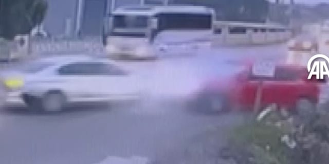 Kazanın gerçekleştiği an, çevredeki bir iş yerinin güvenlik kamerası tarafından kaydedildi. Görüntülerde, 33 AOS 532 plakalı otomobilin bir süre durduktan sonra hareket ettiği ve sola dönüş yapmaya çalıştığı sırada karşı yönden gelen diğer araçla çarpıştığı net bir şekilde görülüyor.