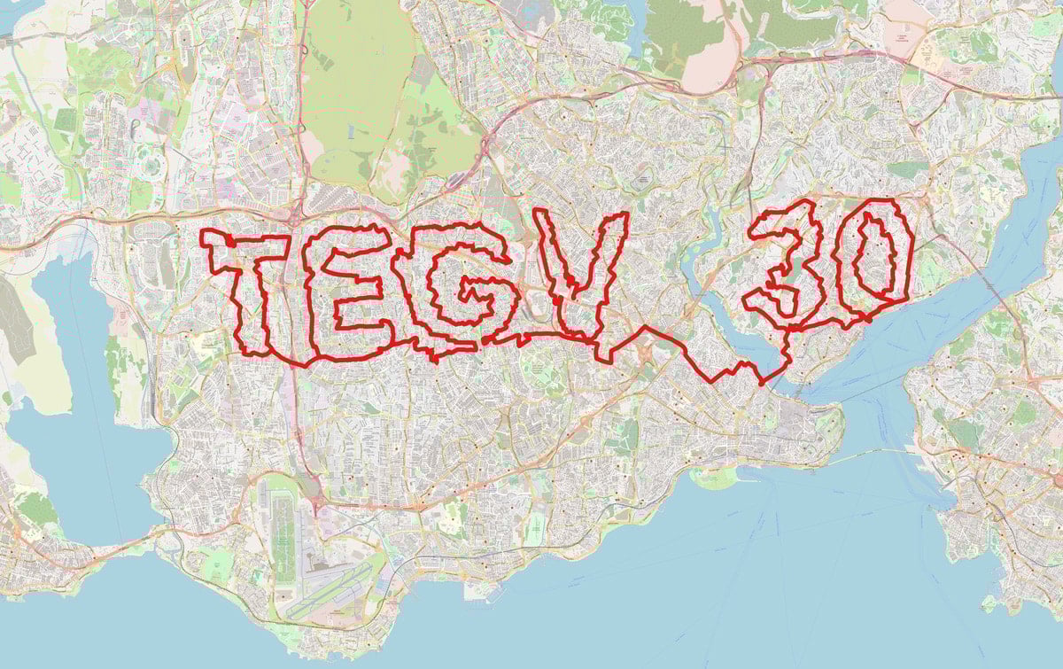Proje kapsamında Ahmet H. Uysal, Türkiye Eğitim Gönüllüleri Vakfı’nın (TEGV) 30. yılına özel, İstanbul’un farklı semtlerinde, Küçükçekmece’den Beşiktaş’a uzanan zorlu bir rotayı koştu. Bu rota, GPS teknolojisi aracılığıyla “TEGV 30” yazısını oluşturacak şekilde özel olarak planlandı. Koşucunun performansı, sanatçının kurguladığı bu metinsel kompozisyon aracılığıyla bir sanat eserine dönüştü.