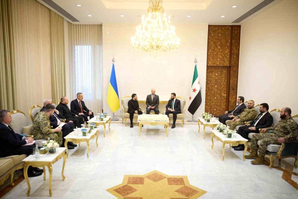 Eğitim Türkiye, Suriye ve Ukrayna’dan Üçlü Görüşme Dışişleri Bakanı Hakan Fidan, Zelenskiy ve eş-Şara ile Türkiye, Suriye ve Ukrayna görüşmesi yaptı. Hakan Kaplan 5 Nisan 2026 Dışişleri Bakanı Hakan Fidan, Ukrayna Devlet Başkanı Vladimir Zelenskiy ve Suriye Devlet Başkanı Ahmed eş- Şara’nın katılımıyla Türkiye, Suriye ve Ukrayna arasında üçlü görüşme gerçekleştirildi. Dışişleri Bakanı Hakan Fidan, resmi ziyaret kapsamında geldiği Suriye’de temaslarına devam ederken, Türkiye, Suriye ve Ukrayna arasında üçlü görüşme düzenlendi. Görüşmeye, Bakan Fidan, Ukrayna Devlet Başkanı Vladimir Zelenskiy ve Suriye Devlet Başkanı Ahmed eş-Şara katıldı. – ŞAM Tags: Suriye Related Stories Fidan, Suriye’de Esad ile Görüştü Eğitim Fidan, Suriye’de Esad ile Görüştü 5 Nisan 2026 Ağıralioğlu Bilecik’te Halk Buluşmasında Konuştu Eğitim Ağıralioğlu Bilecik’te Halk Buluşmasında Konuştu 5 Nisan 2026 Lauterbach’tan Et Tüketimi Tavsiyesi Eğitim Sağlık Lauterbach’tan Et Tüketimi Tavsiyesi 5 Nisan 2026